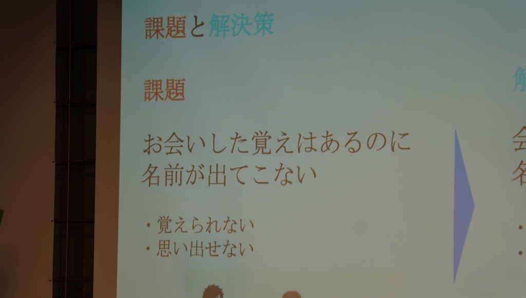 松原大悟氏と伊藤義明氏が開発した。松原氏が解決したいのは、会った覚えはあるが名前が出てこないという問題だ。名刺交換をしても覚えきれない、名前を間違えると失礼にあたりビジネスの機会を逃すかもしれない。14人の外国人にも聞いたところ13人が名前を覚えるのが苦手と答えたといい、国を問わず普遍的な課題だと松原氏は指摘する。